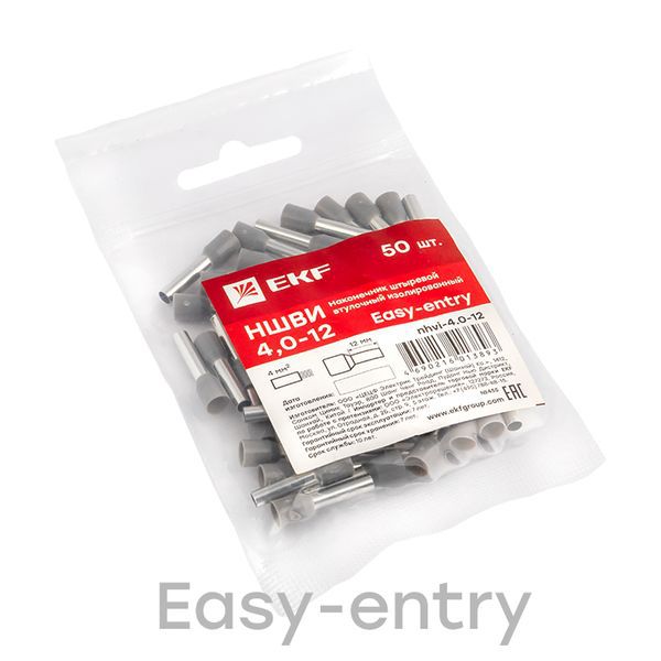 Наконечник штыревой втулочный изол. НШвИ 4.0-12 (уп.50шт) EKF nhvi-4.0-12 -