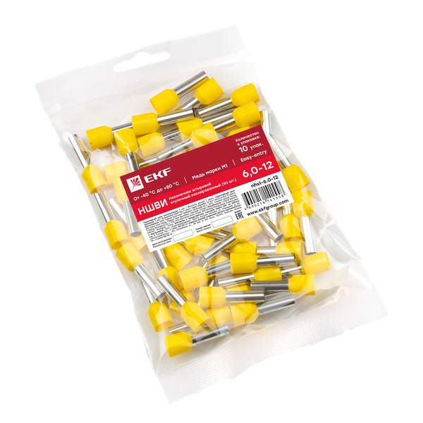 Одинарные и двойные втулочные наконечники (НШвИ и НШвИ2) EKF PROxima являются единственными специально разработанными наконечниками под опрессовку, которые полностью заменяют обязательный процесс облуживания многопроволочных медных проводов (типа ПВ-3, ПВС и т.п.) при монтаже различного электрооборудования. Втулочные наконечники состоят из медной луженой трубки, один конец которой развальцован для облегчения ввода многожильного провода и изолирующей манжеты из полипропилена.
