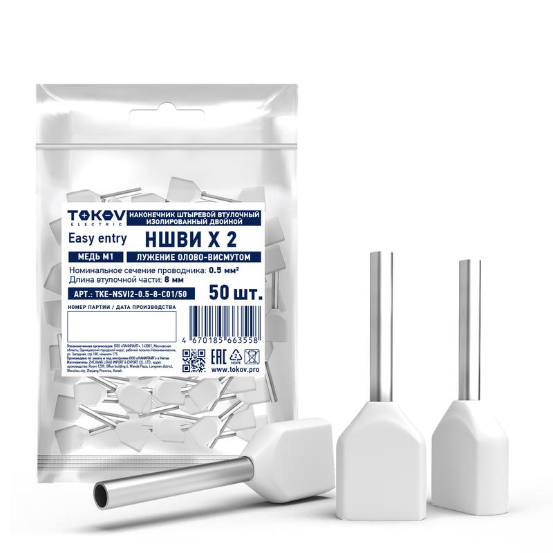 Наконечник штыревой втулочный изолированный двойной НШВИ(2) 0.5-8 TOKOV ELECTRIC TKE-NSVI2-0.5-8-C01/50