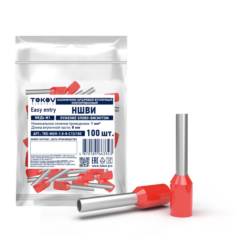 Наконечник штыревой втулочный изолированный НШВИ 1.0-8 TOKOV ELECTRIC TKE-NSVI-1.0-8-C13/100 -
