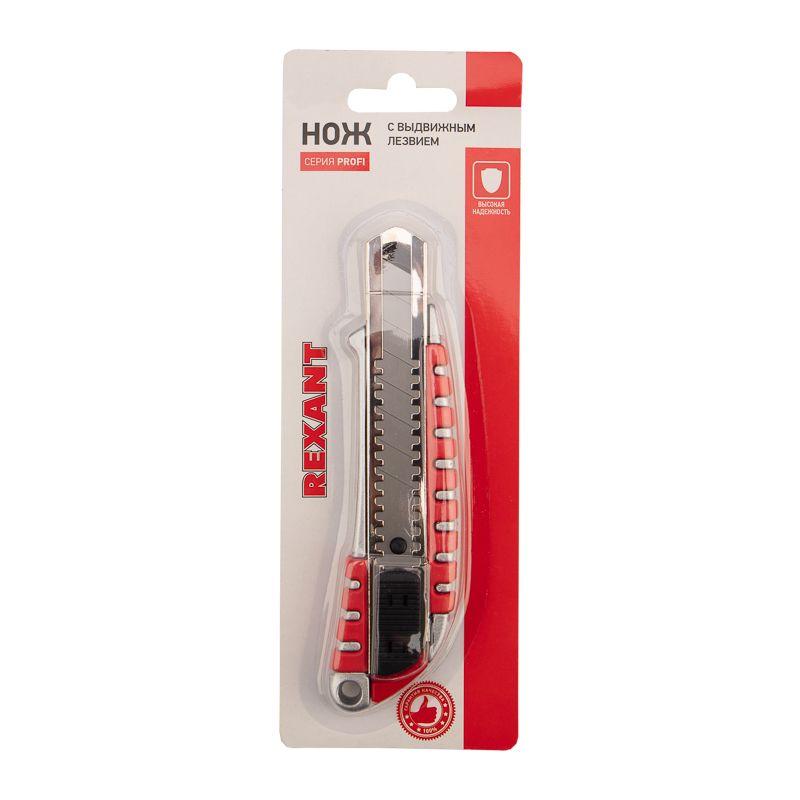 Нож с сегмент. лезвием 18мм метал. обрезинен. корпус REXANT 12-4900 -