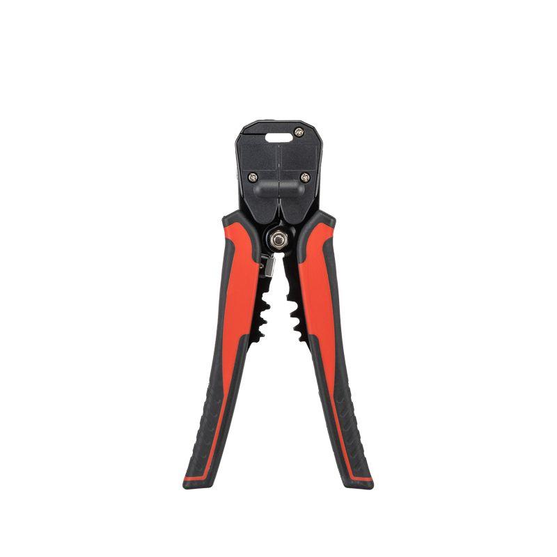 Корпус стриппера изготовлен из высокопрочной инструментальной стали, благодаря чему устойчив к механическим воздействиям и имеет продолжительный срок службы. В конструкции стриппера предусмотрен ограничитель длины зачистки провода, который позволяет точно контролировать длину зачистки на всех проводах, и возвратная пружина, которая обеспечивает обратный ход рукояток и упрощает процесс работы с инструментом. Регулятор усилия зажима провода позволяет адаптировать инструмент под различные типы и размеры изоляции и не повредить сам провод при снятии изоляции. Также стриппер оснащен режущей кромкой для равномерной обрезки проводников. Двухкомпонентные защитные рукоятки с резиновыми вставками не дают инструменту выскальзывать из руки при работе.