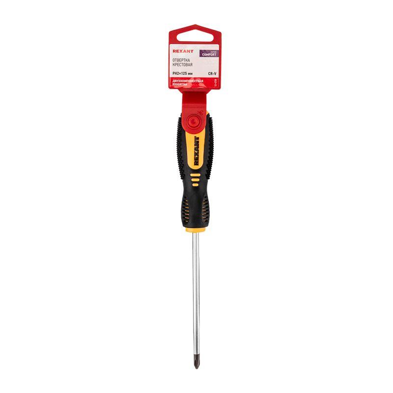 Отвертка крестовая PH 2х125мм двухкомпонентная рукоятка Rexant 12-4728