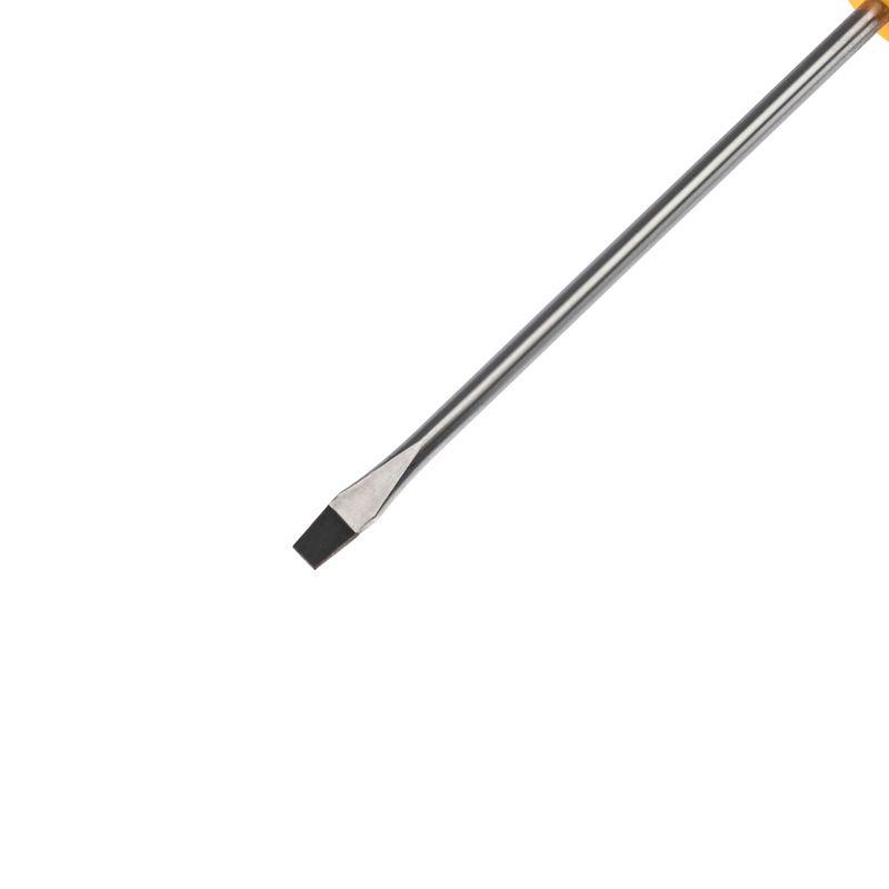 Отвертка SL3х75 мм REXANT используется для монтажа и демонтажа резьбовых соединений (шурупов, саморезов), имеющих на головке прямой паз. Оснащена эргономичной двухкомпонентной рукояткой, которая предотвращает скольжение в ладони и обеспечивает более комфортную работу. Инструмент обладает стержнем, который изготовлен из высококачественной хромованадиевой стали, характеризующейся высокой стойкостью к коррозии. Благодаря намагниченному наконечнику крепежная деталь не упадет при извлечении или установке. В основании инструмента предусмотрено отверстие для его подвеса.