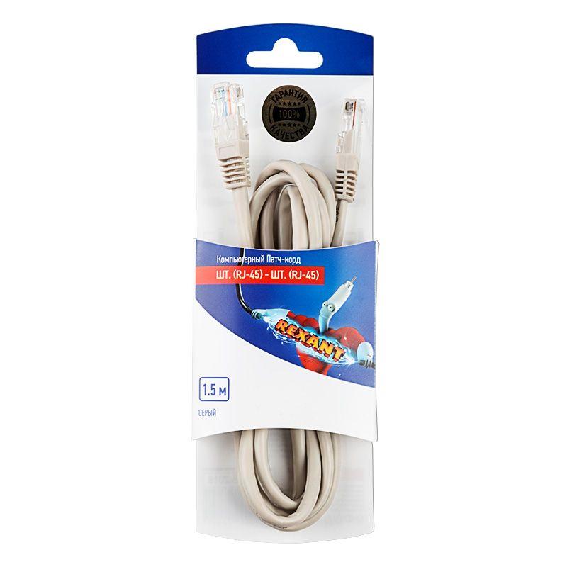Патч-корд UTP 5e кат. литой 1.5м сер. (блист.) Rexant 06-3202