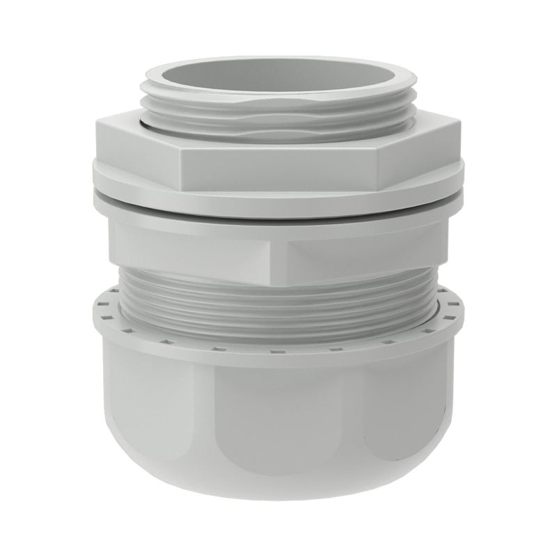 Переходник "Армированная труба - коробка" для герметичного соединения гибких армированных труб с ответвительными коробками, корпусами шкафов и боксов. Диаметр - 32 мм. Материал: полипропилен. Степень пыле- и влагозащиты IP65. Цвет серый RAL 7035. Элемент системы может эксплуатироваться при широком диапазоне температур: от –25°С до +60 °С.