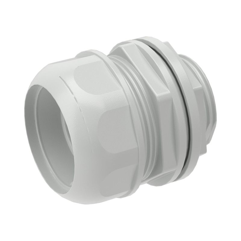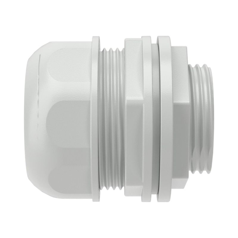 Переходник "Армированная труба - коробка" для герметичного соединения гибких армированных труб с ответвительными коробками, корпусами шкафов и боксов. Диаметр - 20 мм. Материал: полипропилен. Степень пыле- и влагозащиты IP65. Цвет серый RAL 7035. Элемент системы может эксплуатироваться при широком диапазоне температур: от –25°С до +60 °С.