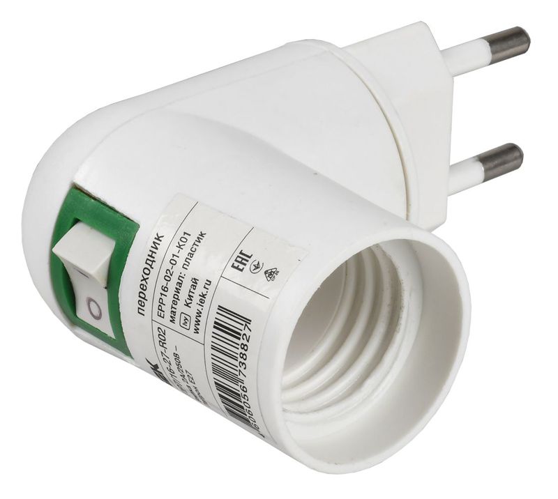 Переходник ПР7/16-27-R02 вилка 220В-патрон Е27 пластик бел. IEK EPP16-02-01-K01 -