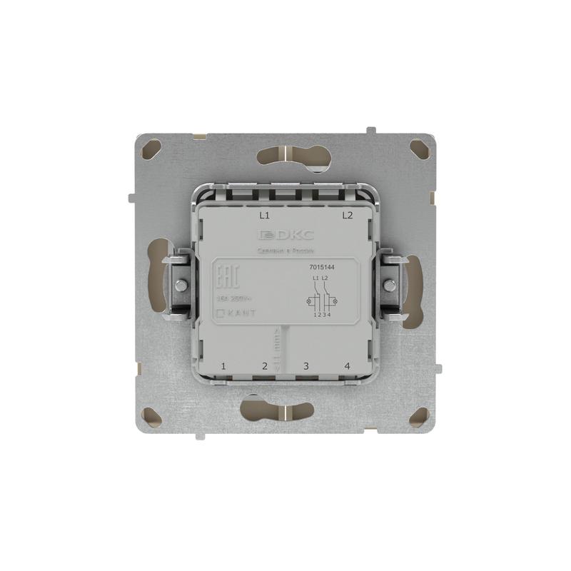 Двухклавишный переключатель с подсветкой применяется для управления двумя контурами освещения из 2 мест. Предназначен для скрытого монтажа в стену. Характеристики устройства: номинальное напряжение 250 В, номинальный ток 16 А. Подсветка имеет белый цвет, предусмотрена для легкой идентификации устройства в темном помещении. Материал: металл, поликарбонат. Пластиковые элементы имеют цвет "Ванильный марципан". Для декоративного оформления электроустановочных изделий используются рамки серии "KANT".