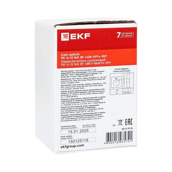 Переключатель кулачковый ПК-2-13 3П 16А "ВКЛ-ВЫКЛ" EKF pk-2-13-16