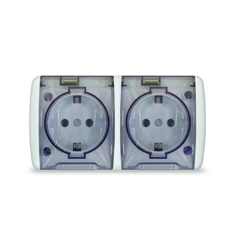 Розетка 2-м ОП Клио 16А IP54 с заземл. с прозр. крышкой бел. UNIVersal К2232