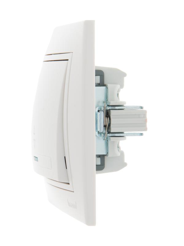Переключатель проходной 1-кл. СП Mira 10А с подсветкой с бел. вставкой бел. LEZARD 701-0202-114