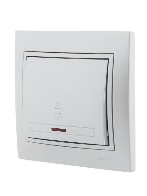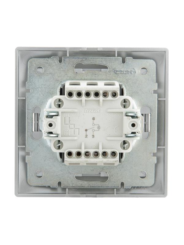 Переключатель проходной 1-кл. СП Mira 10А с подсветкой со вставкой сер. метал. LEZARD 701-1010-114 -