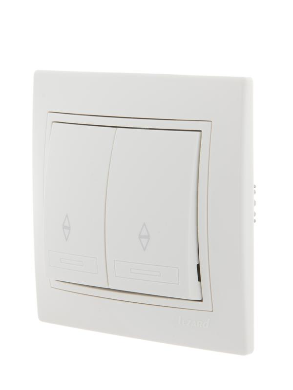 Переключатель проходной 2-кл. СП Mira 10А IP20 с бел.вставкой бел. LEZARD 701-0202-106