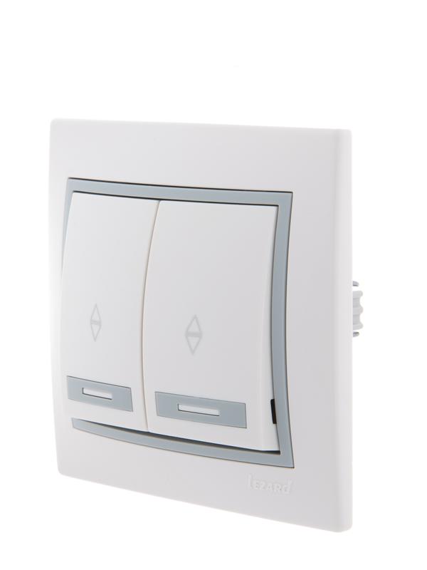 Переключатель проходной 2-кл. СП Mira 10А с сер. вставкой бел. LEZARD 701-0215-106 -