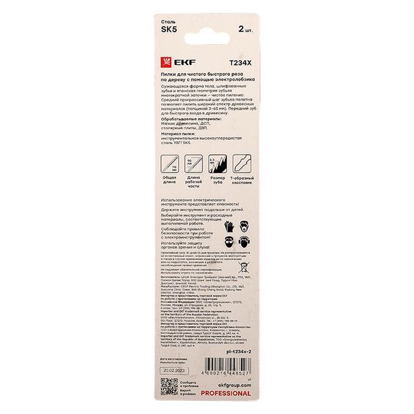 Пилка для электролобзика T234X (быстрый чистовой рез по дереву)(SK5) (уп.2шт) Professional EKF pl-t234x-2