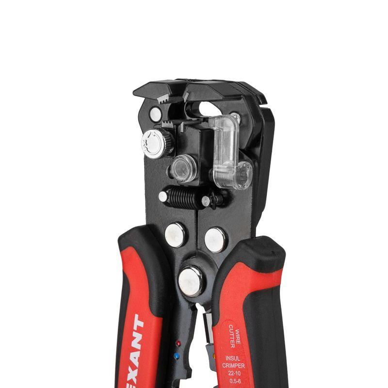 Корпус стриппера изготовлен из высокопрочной инструментальной стали, благодаря чему устойчив к механическим воздействиям и имеет продолжительный срок службы. В конструкции стриппера предусмотрен ограничитель длины зачистки провода, который позволяет точно контролировать длину зачистки на всех проводах, и возвратная пружина, которая обеспечивает обратный ход рукояток и упрощает процесс работы с инструментом. Регулятор усилия зажима провода позволяет адаптировать инструмент под различные типы и размеры изоляции и не повредить сам провод при снятии изоляции. Также стриппер оснащен режущей кромкой для равномерной обрезки проводников. Двухкомпонентные защитные рукоятки с резиновыми вставками не дают инструменту выскальзывать из руки при работе.