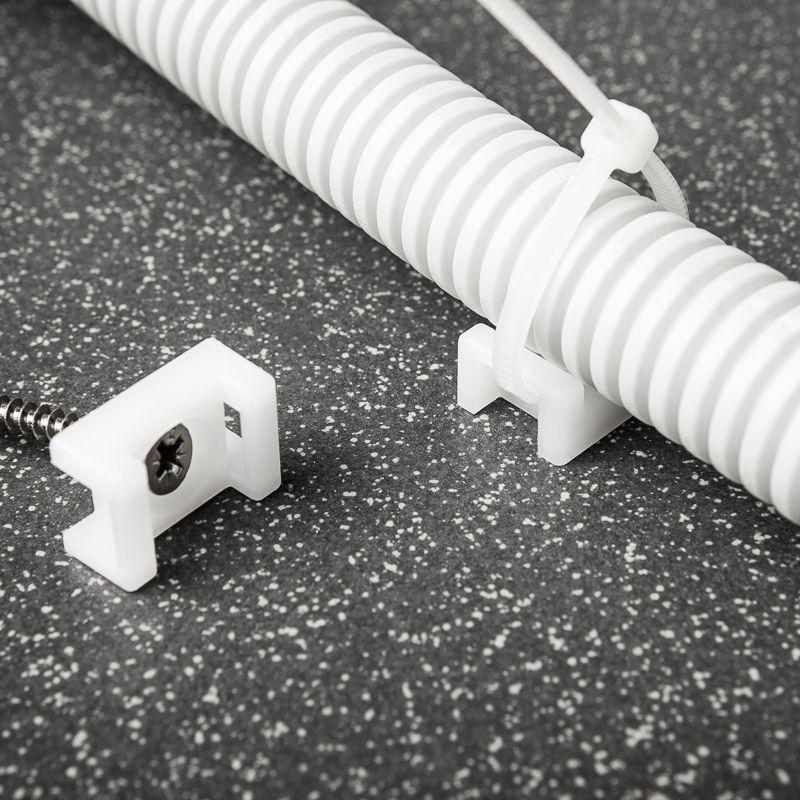 Площадка 22x16 мм для крепления стяжки используется при выполнении электромонтажных работ. Выполнена из белого пластика и оснащена специальным отверстием под хомут. С помощью площадки и одного винта или самореза можно прикрепить к любой поверхности пучки проводов, стянутые хомутом. Это позволяет пользователю произвести как временную, так и постоянную организацию кабельной проводки. Может также использоваться для крепления других легких предметов.
