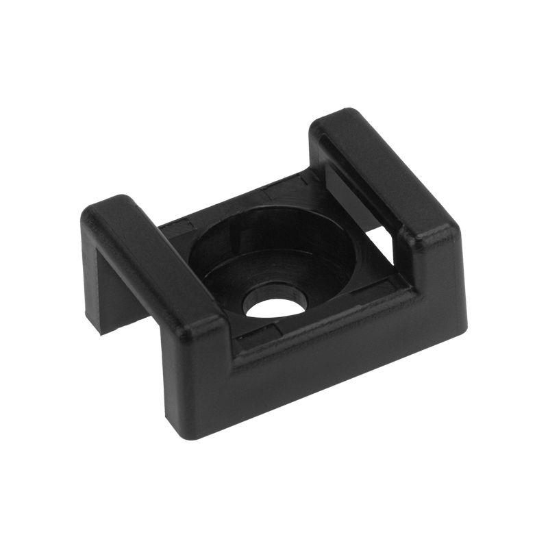 Площадка 22x16 мм для крепления стяжки используется при выполнении электромонтажных работ. Выполнена из черного пластика и оснащена специальным отверстием под хомут. С помощью площадки и одного винта или самореза можно прикрепить к любой поверхности пучки проводов, стянутые хомутом. Это позволяет пользователю произвести как временную, так и постоянную организацию кабельной проводки. Может также использоваться для крепления других легких предметов.