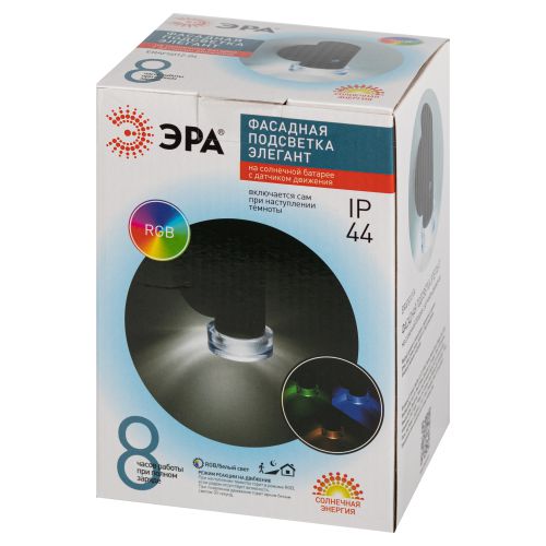 Подсветка фасадная ERAFS012-04 Элегант на солнечной батарее с датчиком движения RGB 10 LED 11.5х10х16см ЭРА Б0057595 -