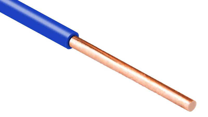 Представляет собой одинарную жилу из отожженной меди сечением 2,5 кв.мм в плотной изоляции из ПВХ-материала, голубого цвета, без оболочки.