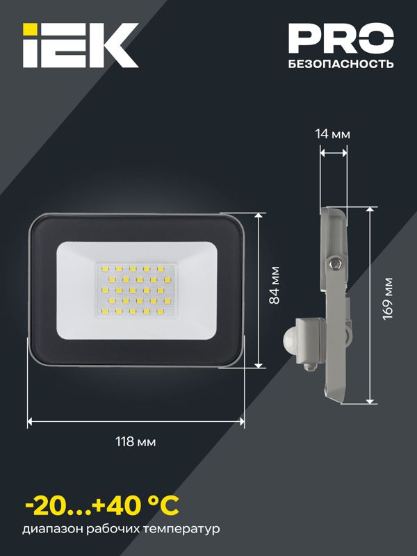 Прожектор светодиодный СДО 07-20Д 20Вт 6500К IP54 с датчиком движ. сер. IEK LPDO702-20-K03