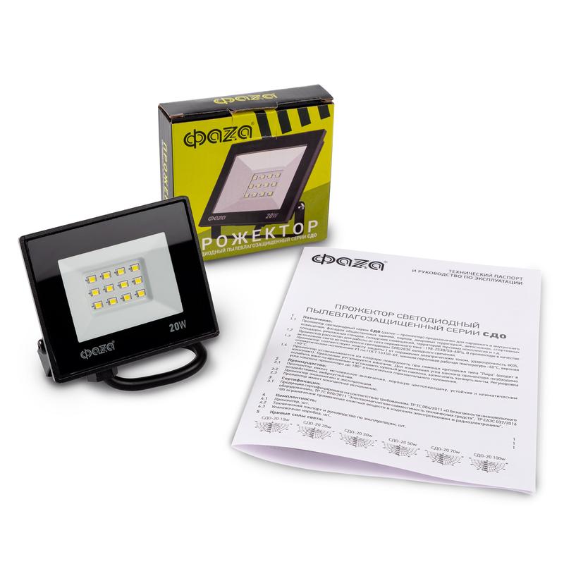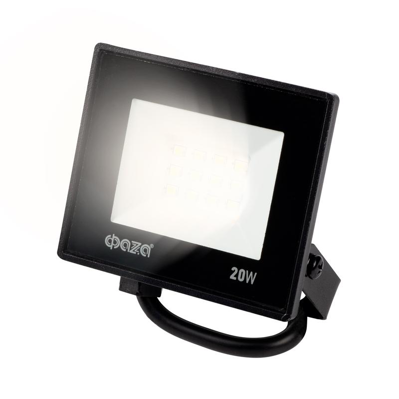 Прожектор светодиодный СДО-20 20Вт 6500К IP65 230В BL ДО прозр. закален. стекло ФАZА 5047266