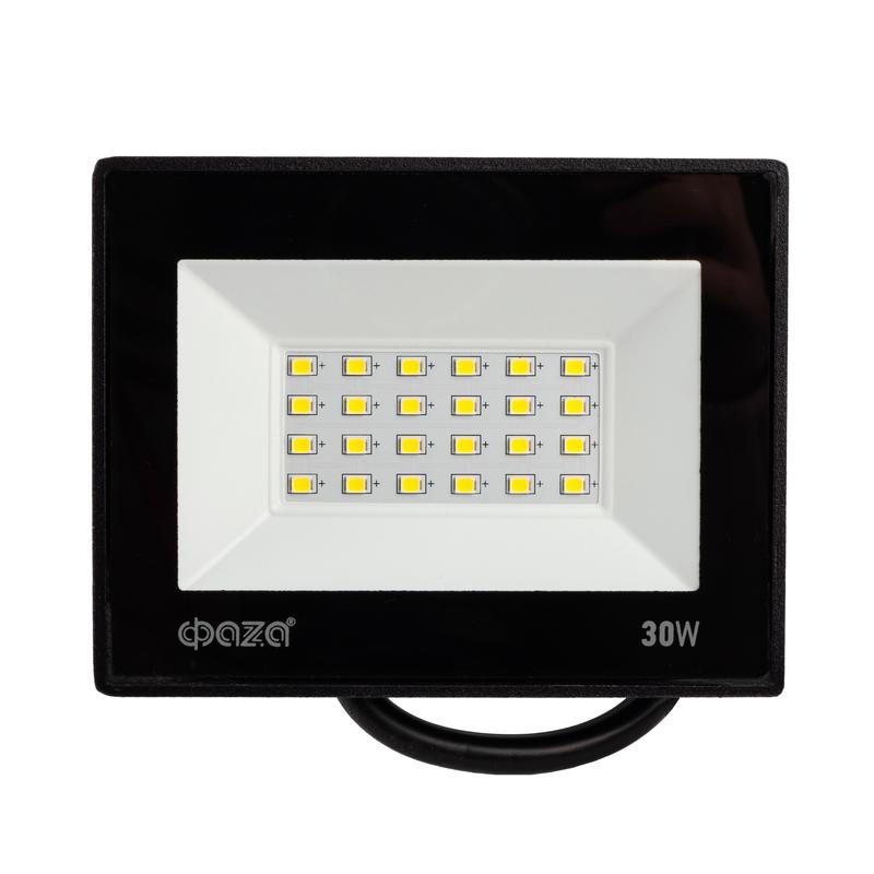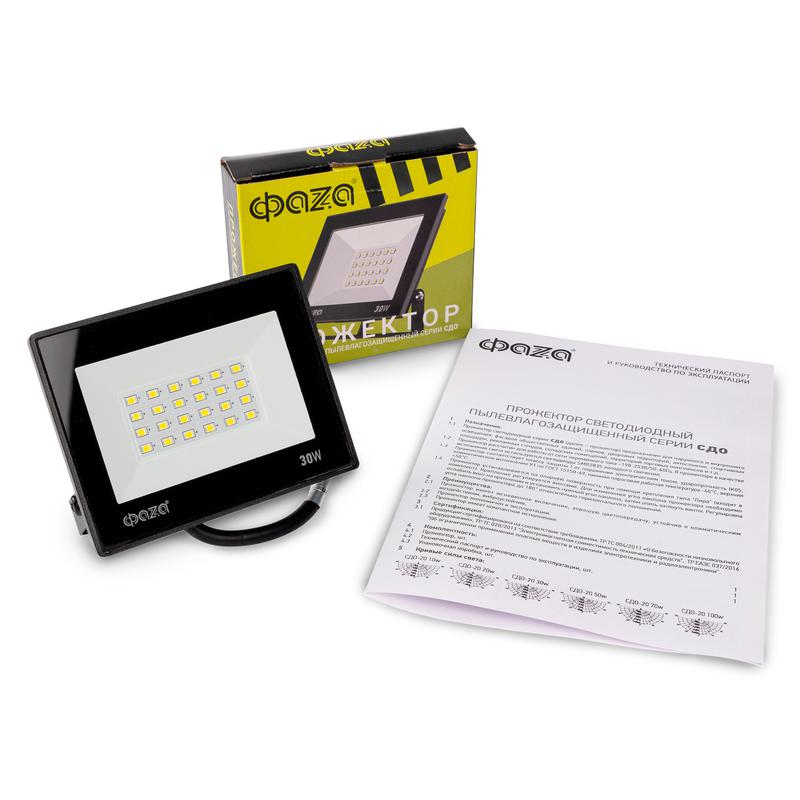 Прожектор светодиодный СДО-20 30Вт 6500К IP65 230В BL ДО прозр. закален. стекло ФАZА 5047280