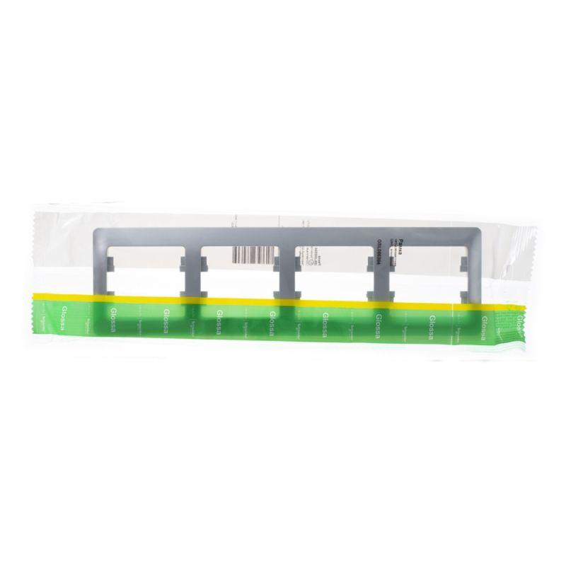 Рамка Systeme Electric (ранее Schneider Electric) серии Glossa (цвет алюминий) четырёхместная. Устанавливается в горизонтальном положении. Выполнена из материала PС+ASA, стойкого к УФ-излучению и появлению царапин. Позволяет гармонично вписать электроустановочное изделие в интерьер помещения.
