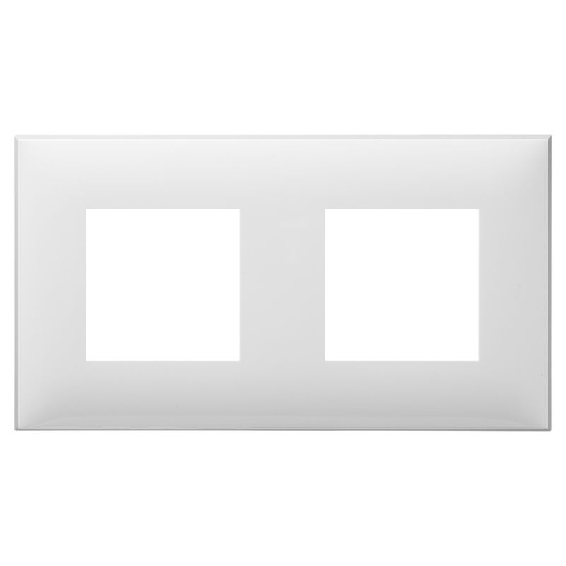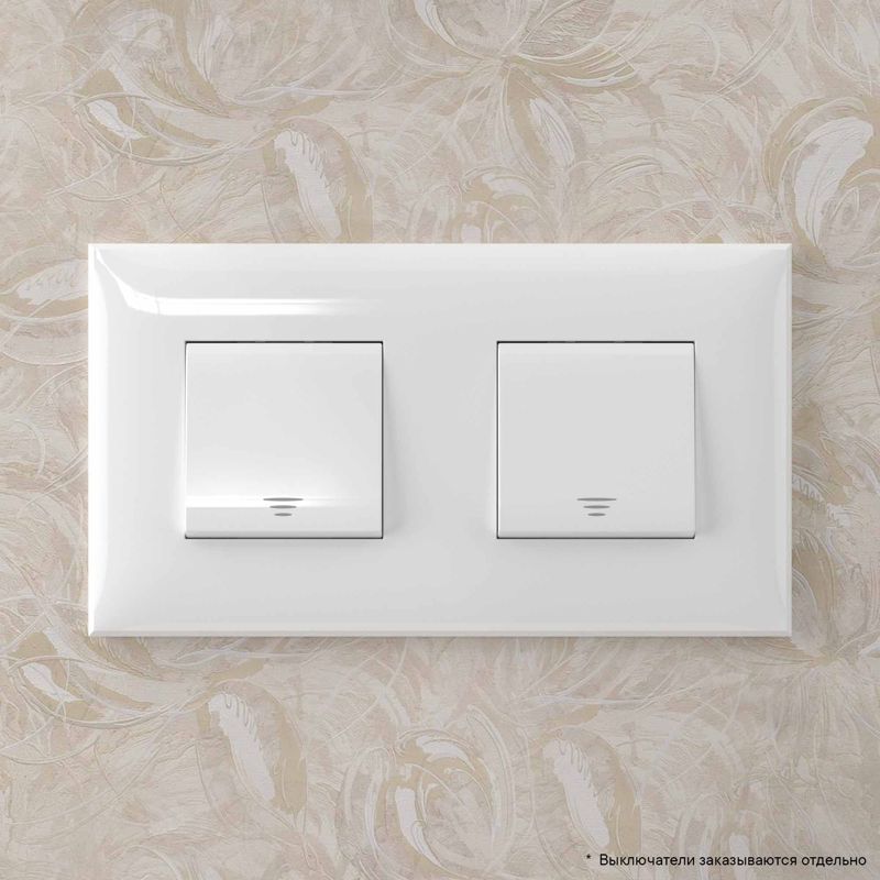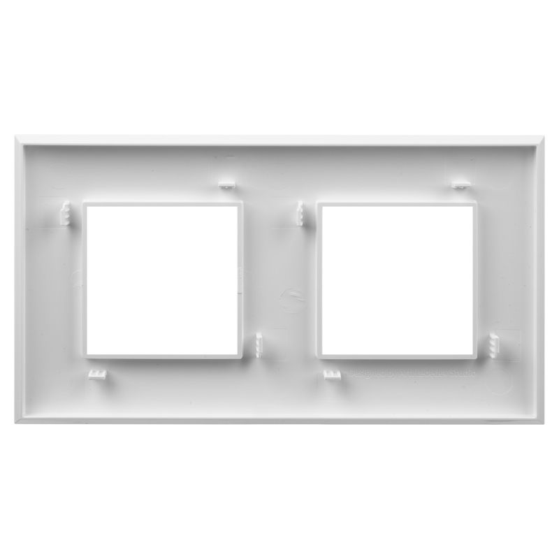Рамка имеет 2 места под электроустановочные изделия (максимальная вместимость – 4 модуля), может размещаться как горизонтально, так и вертикально. Габаритные размеры: 160х90 мм. Материал – термопласт.