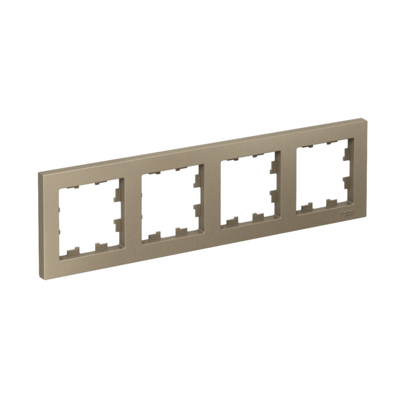 Рамка Systeme Electric (ранее Schneider Electric) серии AtlasDesign в цвете шампань четырёхместная. Устанавливается в вертикальном и горизонтальном положениях. Лицевые детали из качественного ABS-пластика, устойчивого к царапинам и УФ-излучению. Позволяет гармонично вписать электроустановочное изделие в интерьер помещения.