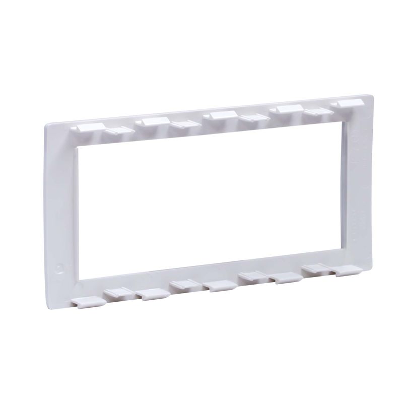 Рамка универсальная 4-модульная для ЭУИ. Назначение: монтаж ЭУИ серий "Viva" и типоразмера 45х45 мм в пластиковые короба серии "In-liner Front", алюминиевые короба и колонны "Aero", лючки и напольные башенки BUS. Характеристики: материал – АБС-пластик; универсальная - устанавливается поверх каркасов: F0000M, F0000MB, F0000A, F0000L; 2-модульная рамка устанавливается поверх одного 2-модульного каркаса; 4-модульная рамка - поверх двух 2-модульных каркасов; 6-модульная рамка - поверх трех 2-модульных каркасов. Цвет: Белый