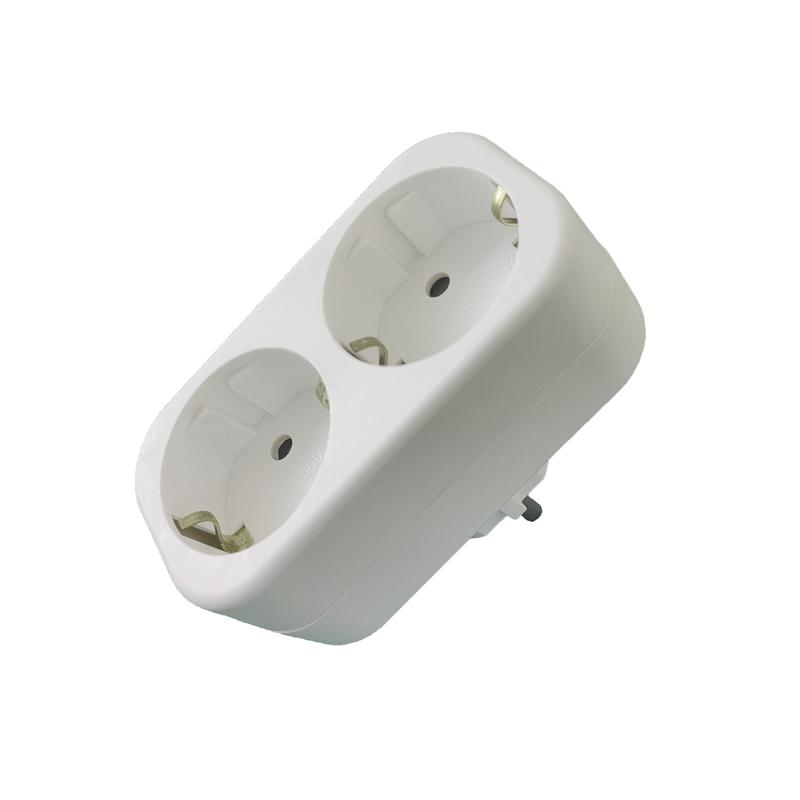 Разветвитель 2 гнезда с заземл. плоский 16А UNIVersal А302