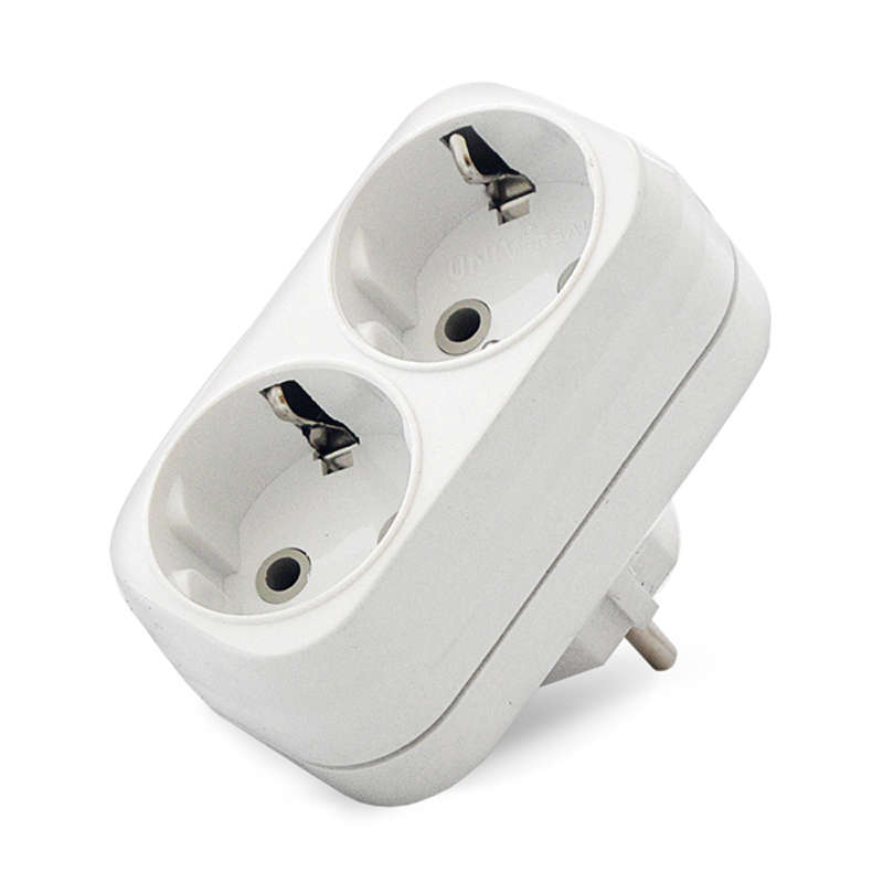 Разветвитель 2 гнезда с заземл. плоский 16А UNIVersal А302 позволяет подключить одновременно 2 электроприбора в розетку.