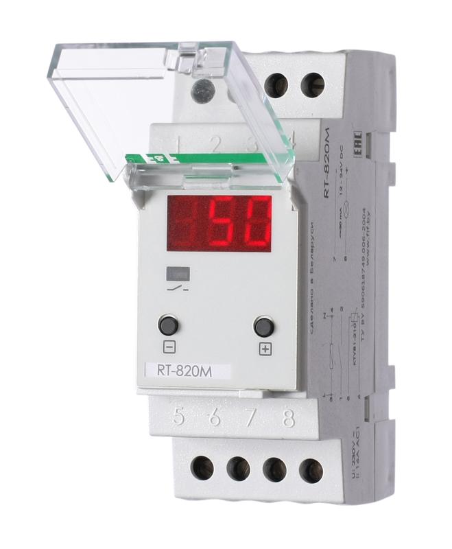 Регулятор температуры RT-820M (от -30 до +140 град.C; микропроцессорный; многофункц.; цифровая индикация; выносной датчик с термоус. проводом; монтаж на DIN-рейке 35мм 24-264В DC/ 30-264В АС 16А 1Z IP20) F&F EA07.001.007