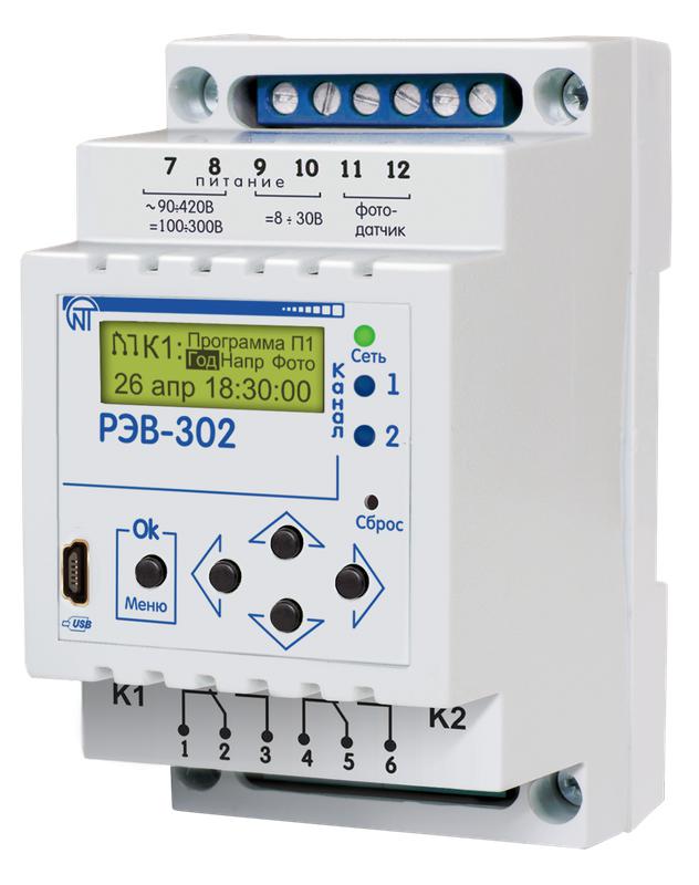 Таймер годовой двухканальный РЭВ-302 с функцией реле напряжения и выносным фотореле НовАтек-Электро 3425604302 -