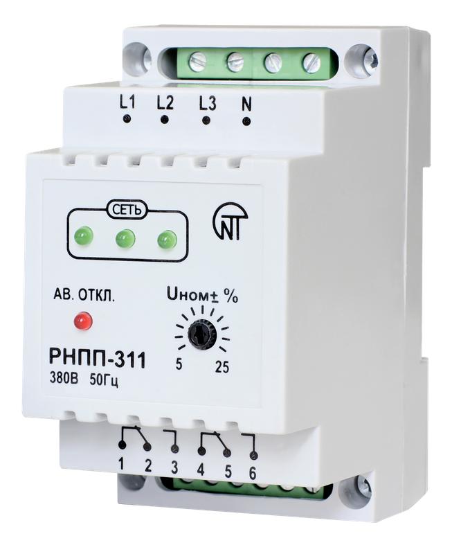 Реле РНПП 311 используется для контроля напряжения в электросети. Устройство работает по принципу отсекателя, обесточивая оборудование в момент выхода параметров сети за установленные пользователем пределы. В тот момент, когда нагрузка возвращается в норму, РНПП-311 включает питание.