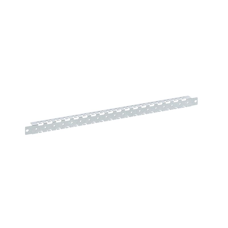 Рейка предназначена для монтажа оборудования и боковых монтажных плат, а также для организации прокладки кабеля. Рейку можно монтировать по высоте на боковые стенки (размер рейки должен быть равен половине высоты корпуса) и по ширине на монтажную раму и заднюю панель (монтаж на раму осуществляется с помощью кронштейнов R6BRTU). Специальные отверстия позволяют фиксировать кабель с помощью хомутов. Шаг перфорации составляет 25 мм, а максимальная статическая нагрузка на одну рейку достигает до 10 кг. Изготовлена из оцинкованной стали толщиной 1,5 мм. Ширина 900 мм.