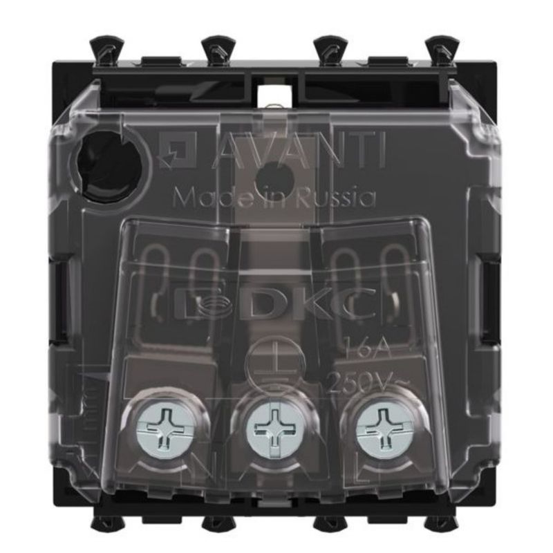 Розетка 1-м 2мод. Avanti "Черный квадрат" 16А IP20 2P+E защ. шторки черн. DKC 4402002