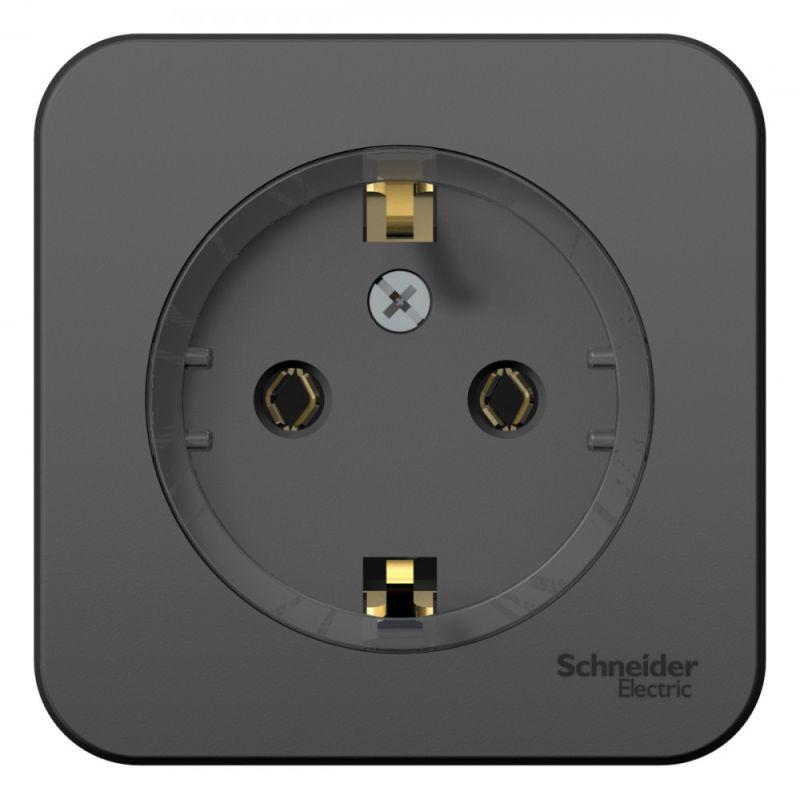 Розетка 1-м ОП Blanca 16А IP20 250В с заземл. без защ. шторок с изолир. пластиной (компакт) антрацит SE BLNRA110116