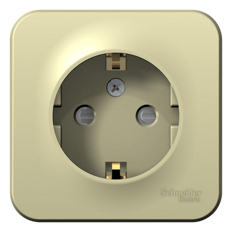 Розетка Systeme Electric (ранее Schneider Electric) BLANCA (открытой установки, цвет бежевый) одноместная с заземлением и шторками, с изолирующей пластиной подходит для сетей 250 В, на ток 16 А. Заземляющий контакт обеспечивает дополнительную защиту от удара электрическим током. При наличии заземления электрический потенциал уходит в землю, защищая человека. Корпус изделия выполнен из ABS-пластика.