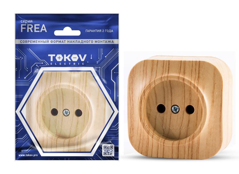 Розетка 1-м ОП Frea 16А IP20 250В без заземл. АБС-пластик сосна TOKOV ELECTRIC TKE-FR-R1-C25