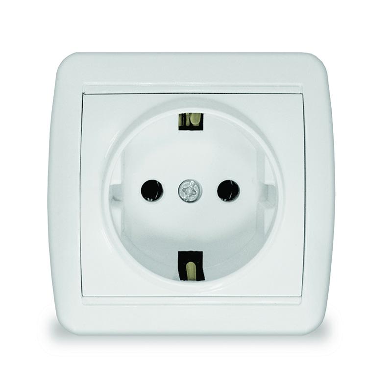Розетка 1-м ОП Клио 16А с заземл. IP44 бел. UNIVersal К2228 представляет собой электроустановочный механизм одноместной розетки.