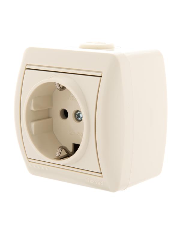 Розетка 1-м ОП Nata 16А IP20 с заземл. керамика крем. LEZARD 710-0300-122