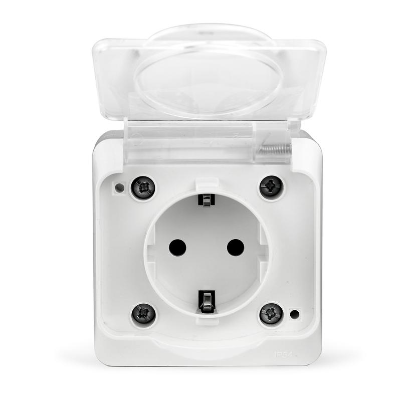 Розетка 1-м ОП Владивосток 16А IP54 с заземл. с прозр. крышкой бел. EKF EQR16-029-30-54-T