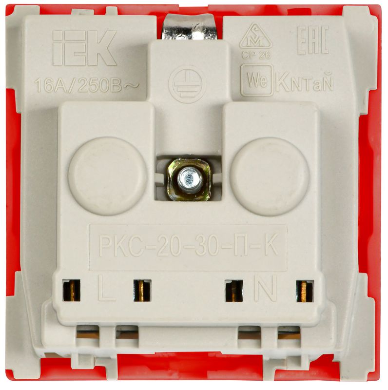 Розетка 1-м Праймер 2мод. 45х45 РКС-20-32-П-К с заземл. красн. IEK CKK-40D-RSZK2-K04-K