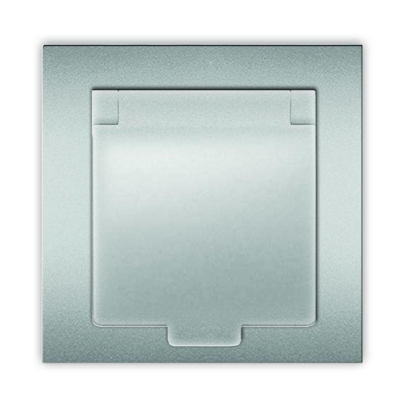 Розетка 1-м СП Афина 16А IP20 с заземл. с крышкой в сборе серебр. Universal A0029-S