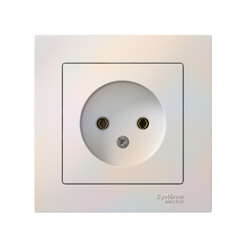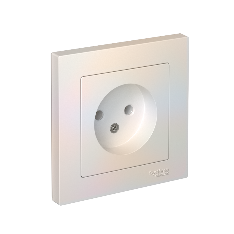 Розетка в сборе Systeme Electric (ранее Schneider Electric) серии AtlasDesign в цвете жемчуг одинарная без заземления и без шторок подходит для сетей 250 В, на ток 16 А. Лицевые детали из качественного ABS-пластика, устойчивого к царапинам и УФ-излучению. Изделие поставляется в комплекте с рамкой того же цвета. Усиленные прямые монтажные лапки для лучшей фиксации механизма в монтажной коробке.