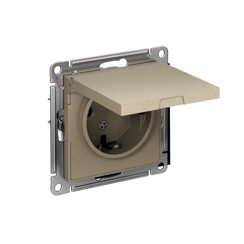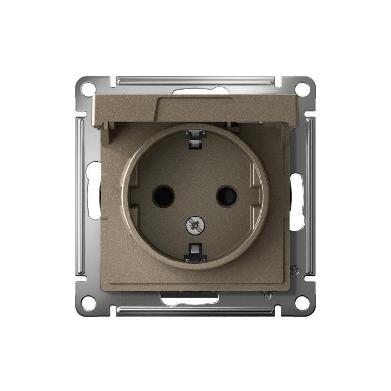 Механизм Schneider Electric AtlasDesign (цвет шампань) розетки одинарной с заземлением, шторками и крышкой подходит для сетей 250 В, на ток 16 А. Заземляющий контакт обеспечивает дополнительную защиту от удара электрическим током. При наличии заземления электрический потенциал уходит в землю, защищая человека. Лицевые детали из качественного ABS-пластика, устойчивого к царапинам и УФ-излучению. Усиленные прямые монтажные лапки для лучшей фиксации механизма в монтажной коробке.