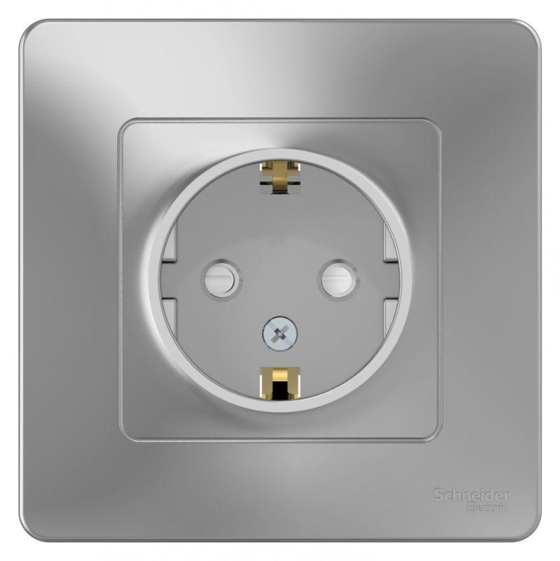 Розетка 1-м СП Blanca 16А IP20 250В с заземл. защ. шторки алюм. SE BLNRS001113